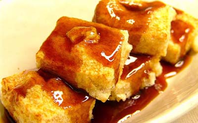 発芽玄米もち…4枚 揚げ油…適量 濃口醤油…大さじ2 砂糖…大さじ4 水…100cc 片栗粉…適量 | ●作り方 <1> 調味料を合わせ加熱する。 <2> 煮立ったら水で溶いた片栗粉を入れ、とろみをつける。 <3> 発芽玄米もちをお好みの大きさに切り、170~180度に熱した油で揚げる。 <4> 揚げた発芽玄米もちを器に盛り2をかける。 |